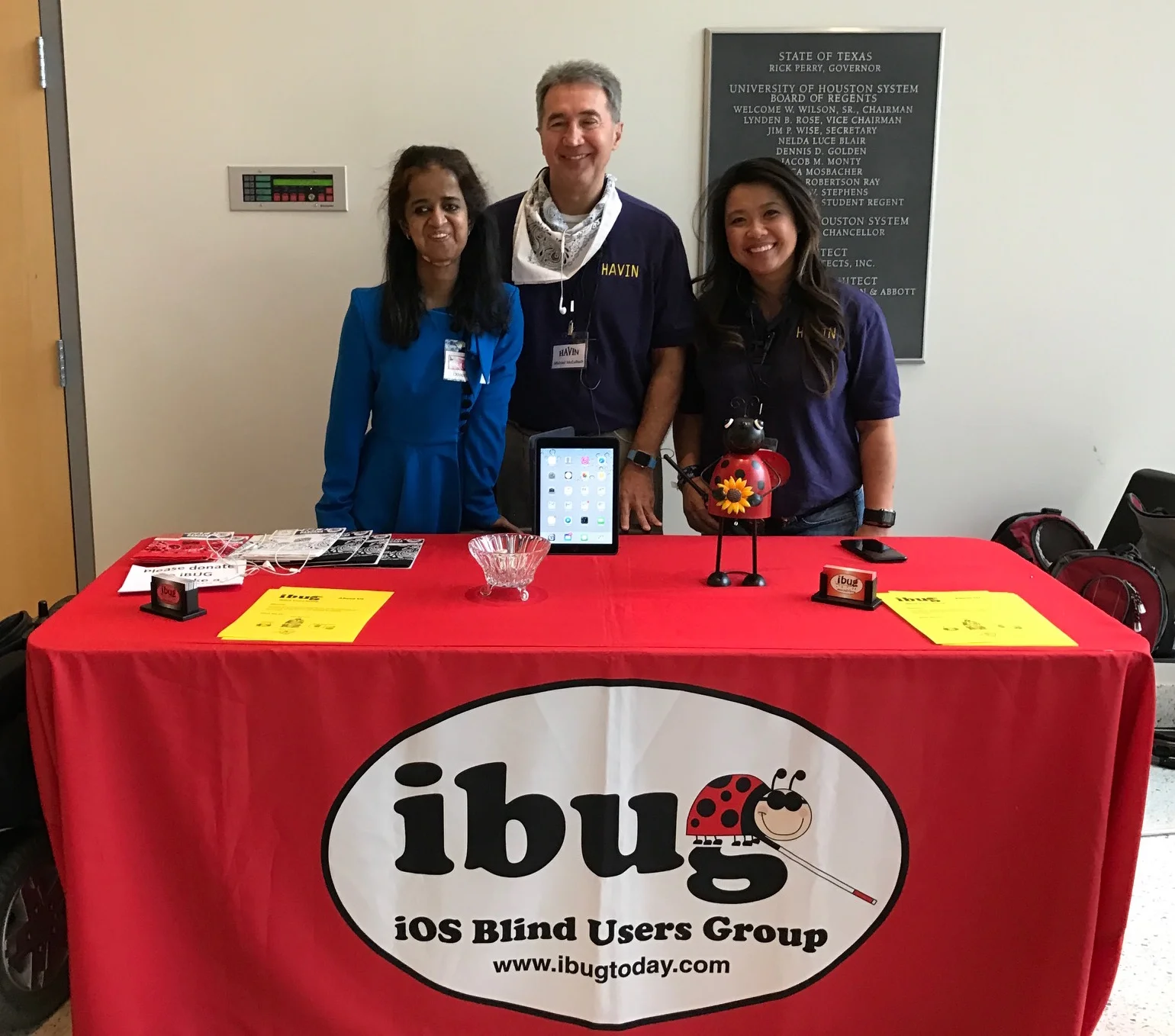 Sandhya, Michael and Chelsea all set up at the iBUG table in the Exhibtion Hall to help users with iOS and iDevice questions and issues